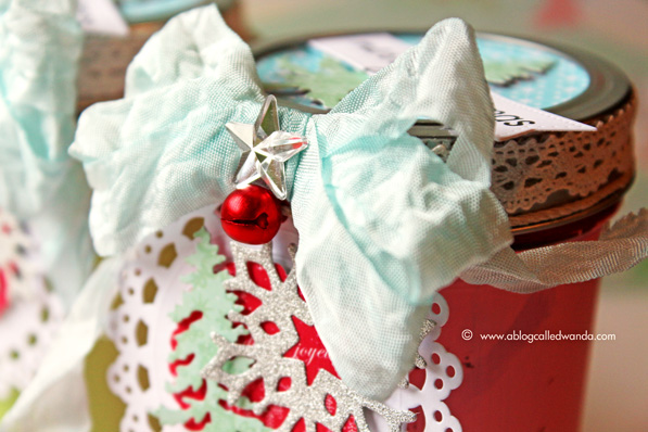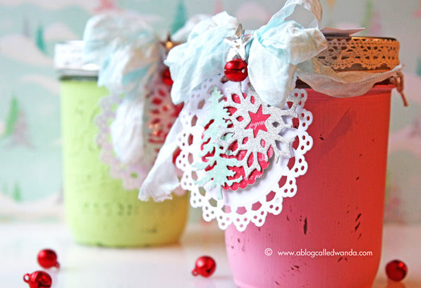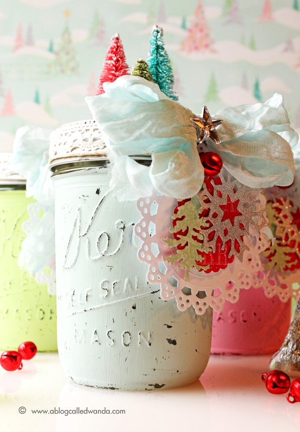 Be sure to buy the wide – mouth mason jars for this project. (ask me how I know that….) I filled the jars with pretty pastel Hershey's Kisses and sealed the lids on top. Everything is made to fit just perfectly onto the top of the jar.