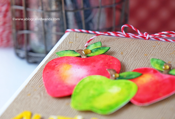 The red paper layer was attached to the card with foam tape – and the apple was also. I added some glitter sprinkles in red and gold. Because I like sparkly things!!