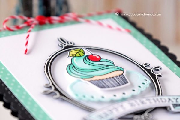 My card started with a kraft woodgrain card base. Then I layered beautiful green paper – just a sliver. Then I stamped the herb images onto a white panel to create my own patterned paper. Then I stamped and die cut my main image and placed it on a crisp tag. Some twine finishes it all off. Because, heck, gardening cards must have twine!