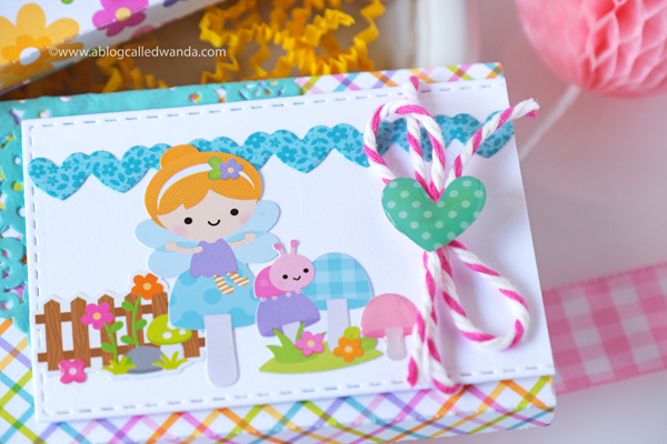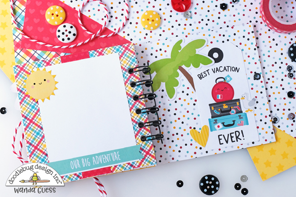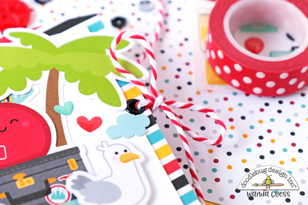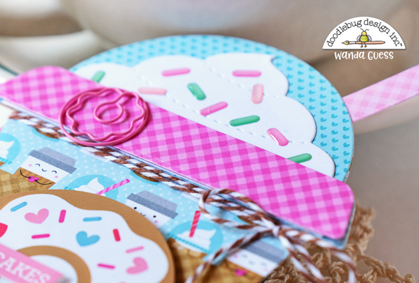 I attached pretty Doodlebug Buttons and hears and other embellishments to some of the circles. I really like that pop of teal blue in this collection, with all those warm colors. It's so pretty in person!