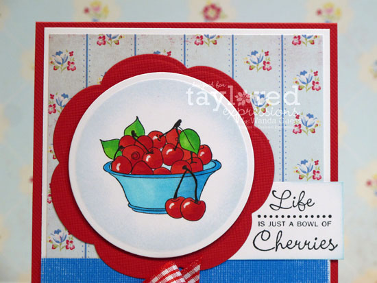 Man, oh man, I love your card, Wanda! those cherries are fabulous! Love every inch of this design. And speaking of love, I adore your new blog banner!! Hope you enjoy your trip to VA. So stinking hot out there, isn’t it? I’m so thankful to be away from it for a few weeks. It’s hot here, but nothing like there.
