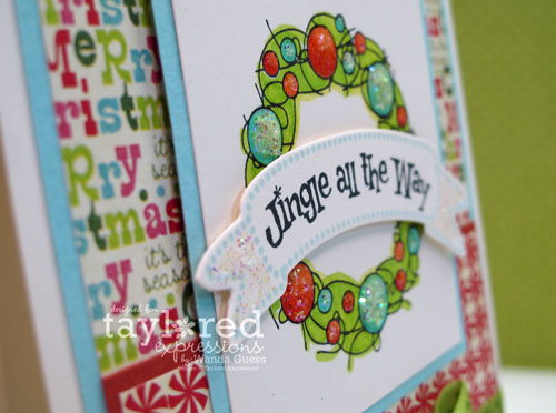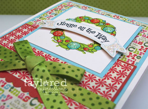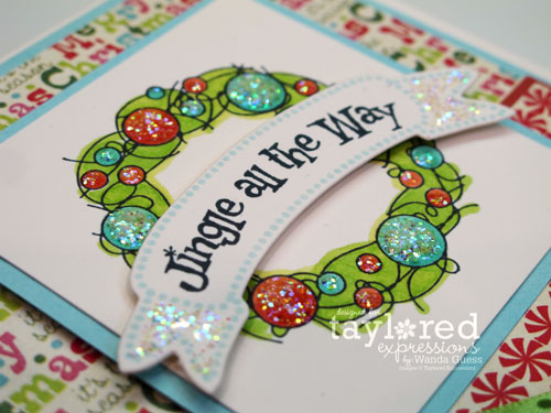 Oh I LOVE this card Wanda! I am so glad I already own Taylor’s wreath die – it is so versatile! I LOVE how you colored this wreath and added those pretty sparkly touches. And those patterned papers are SO yummy! Guess I am going to have to get the project pantry kit this month too huh? LOL!!