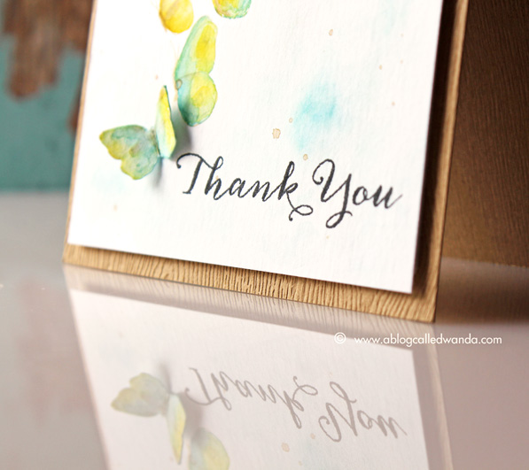 Today I'm sharing a clean and simple butterfly thank you card that I watercolored. I need to give a shout out to the super talented and sweet Dawn from WPlus9. She is so generous with her knowledge and her amazing videos. Seriously…whew. CLICK HERE to see her video page. I sat in my craft room Sunday afternoon just watching her and learning all kinds of cool tricks. This card's for you Dawn! XO