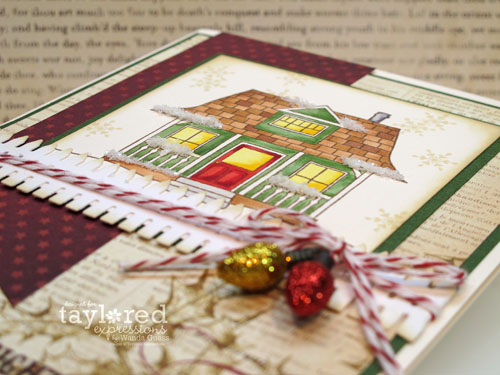 Today I'm sharing a card made with one of my very favorite stamp sets from Taylored Expressions…A Day in Paradise! Now, you might be scratching your head and saying…that's a beach set! Well, it is, but I made it into a Christmas card. I love the house image from the set, and made it into a snowy scene.