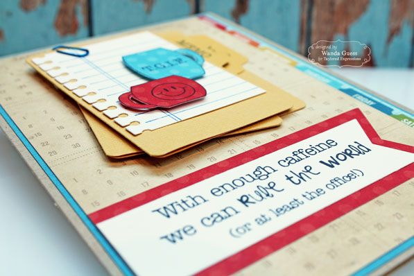 Hi Friends!! It's time for my Taylored Expressions Die Focus post for this month…and this month I'm featuring the versatile and fun File Folder Die! It's perfect for all kinds of work projects, top secret memos and other things. I work full time, and I like to make cards for my co-workers so I love mixing and matching the office related stamps and dies. (Full Supply List at the bottom of my post). And, of course, I love coffee! LOL.